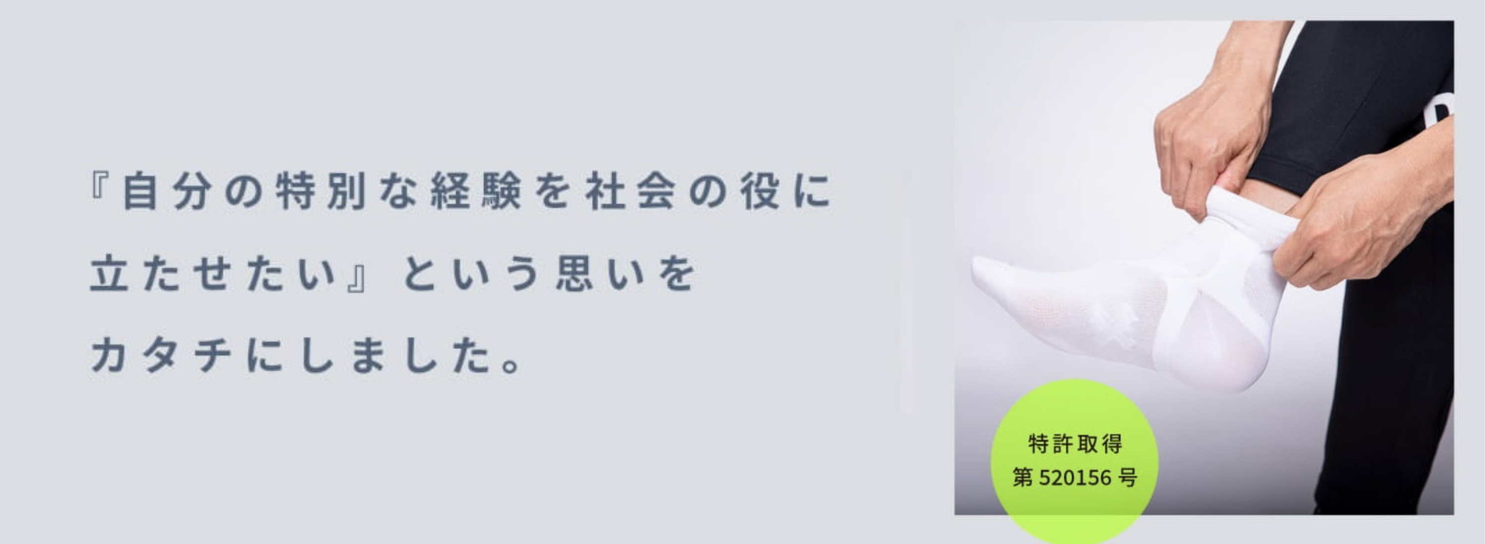 そこで思い付いたのが、疲れを少しでも軽減できるソックスをすぐに開発し、届ける事でした。