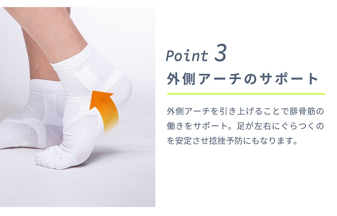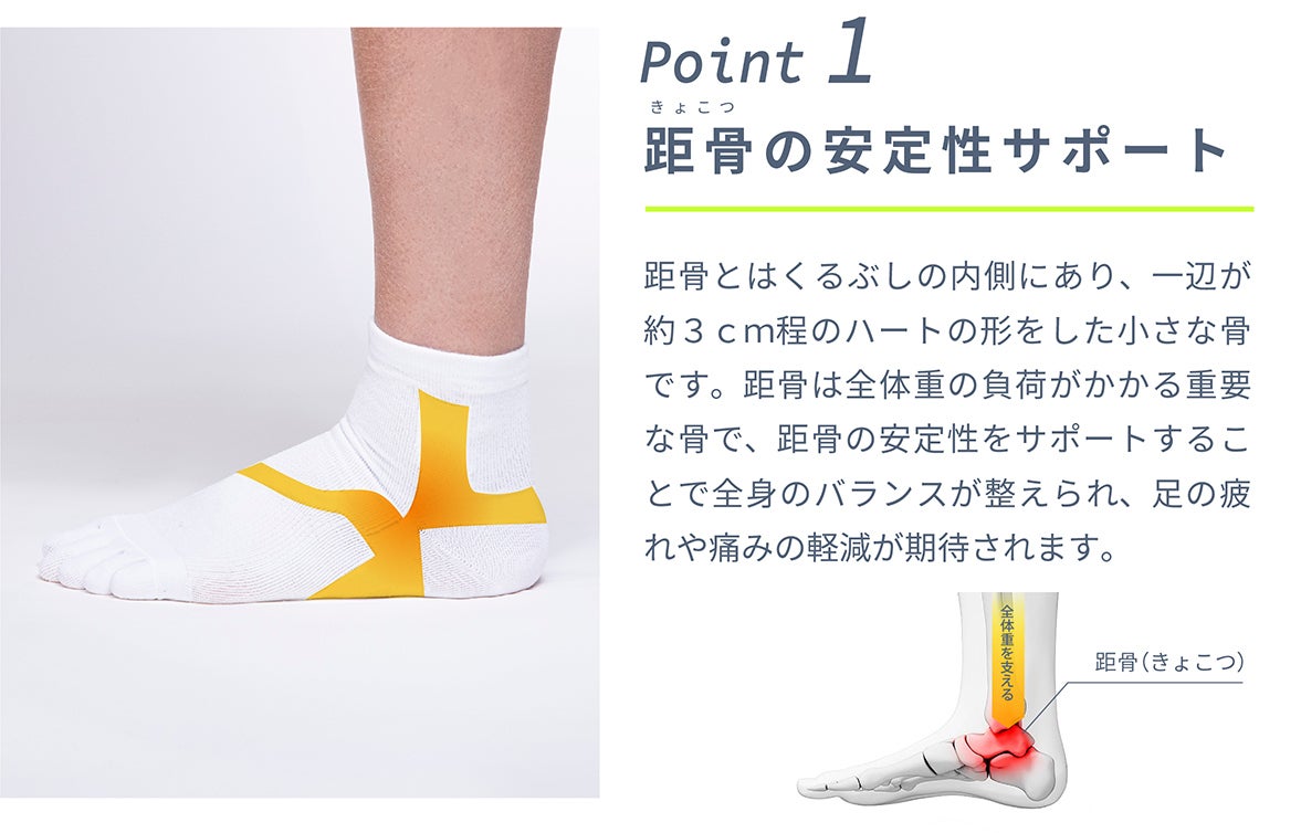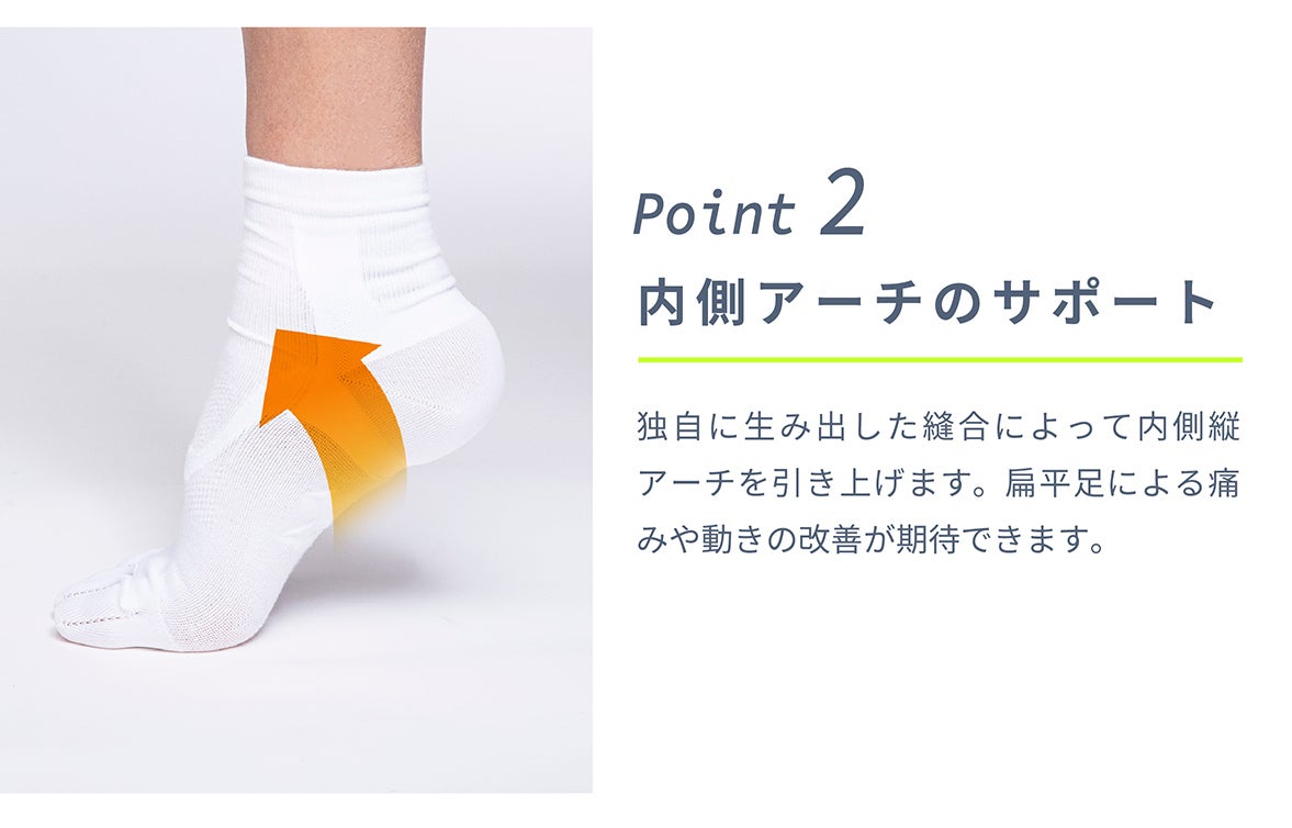 アスリートが持つ運動学の知識と、理学療法士による医学の知識を組み合わせて開発した足の疲労軽減に特化したソックスとなります。
