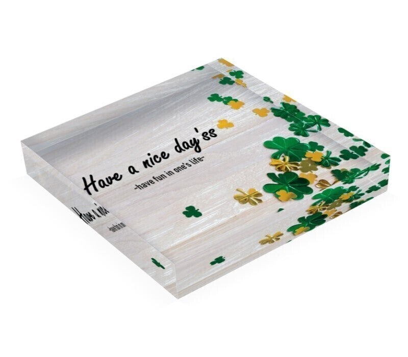 木目調の背景にクローバーの絵柄。春を感じさせる絵柄となっているため今の季節にもピッタリなものとなっています。