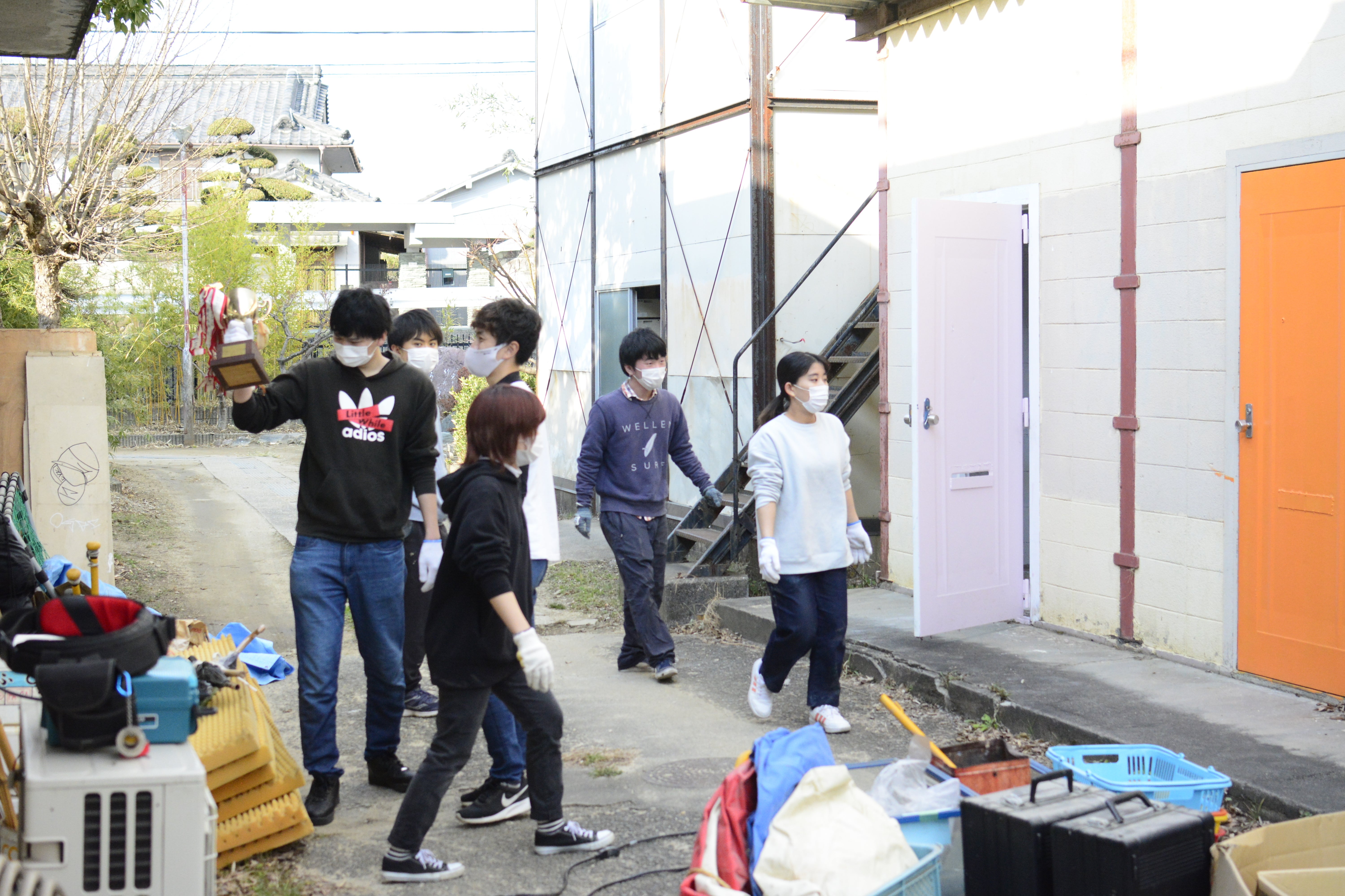 部室の中にはまだ、色んな荷物が入っていて、まずはそれを外に出して掃除するところから…!
