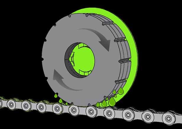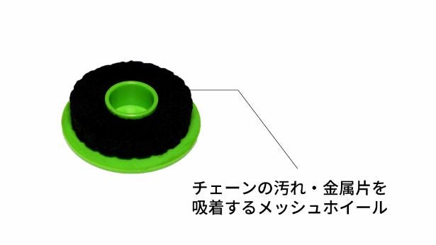 チェーンにオイルを塗りながらチェーンに付着した金属粉や汚れを落とすので、メンテナンスの手間が大幅に短縮可能です。
