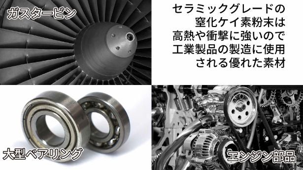 CHAIN OIL ROLLER専用オイルに配合されているセラミックグレード窒化ケイ素粉末は純度が高く粒度分布の幅が狭いという特徴があり、耐高温性・耐食性・耐摩耗性・自己潤滑性に優れたオイルです。