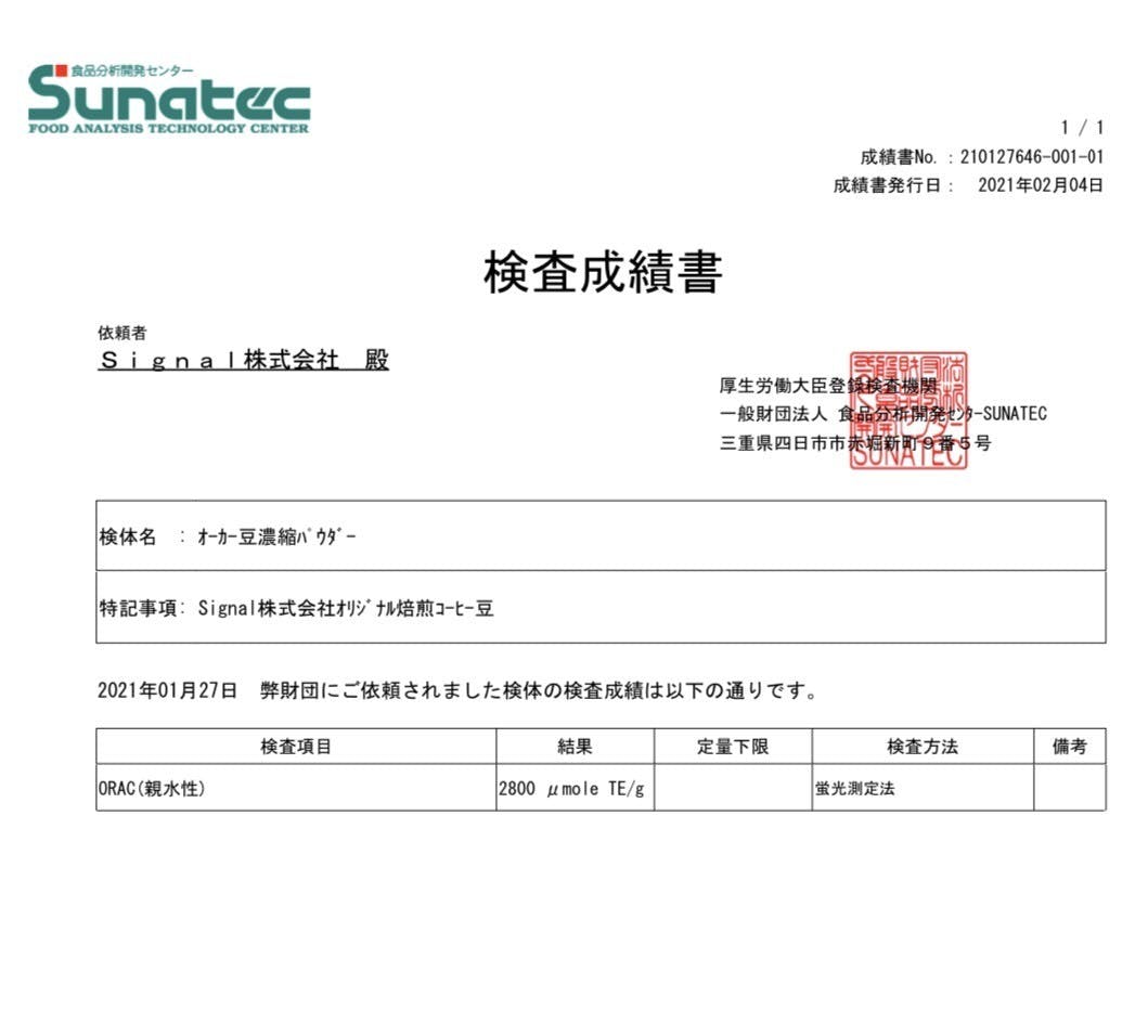 ORAC(活性酸素吸収能力)の分析結果