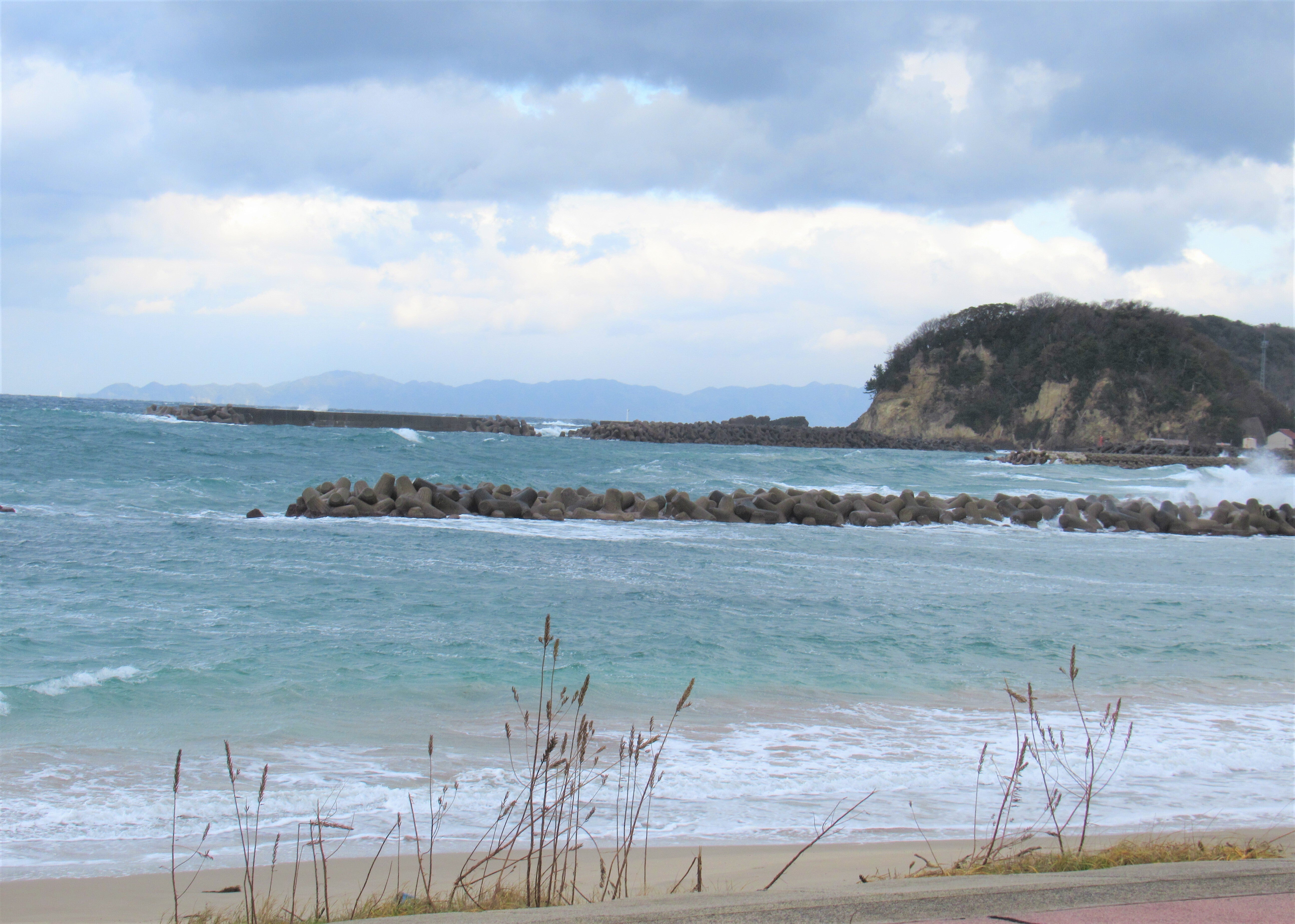 塩焚小屋前の海岸。沖合の海水を使用している。