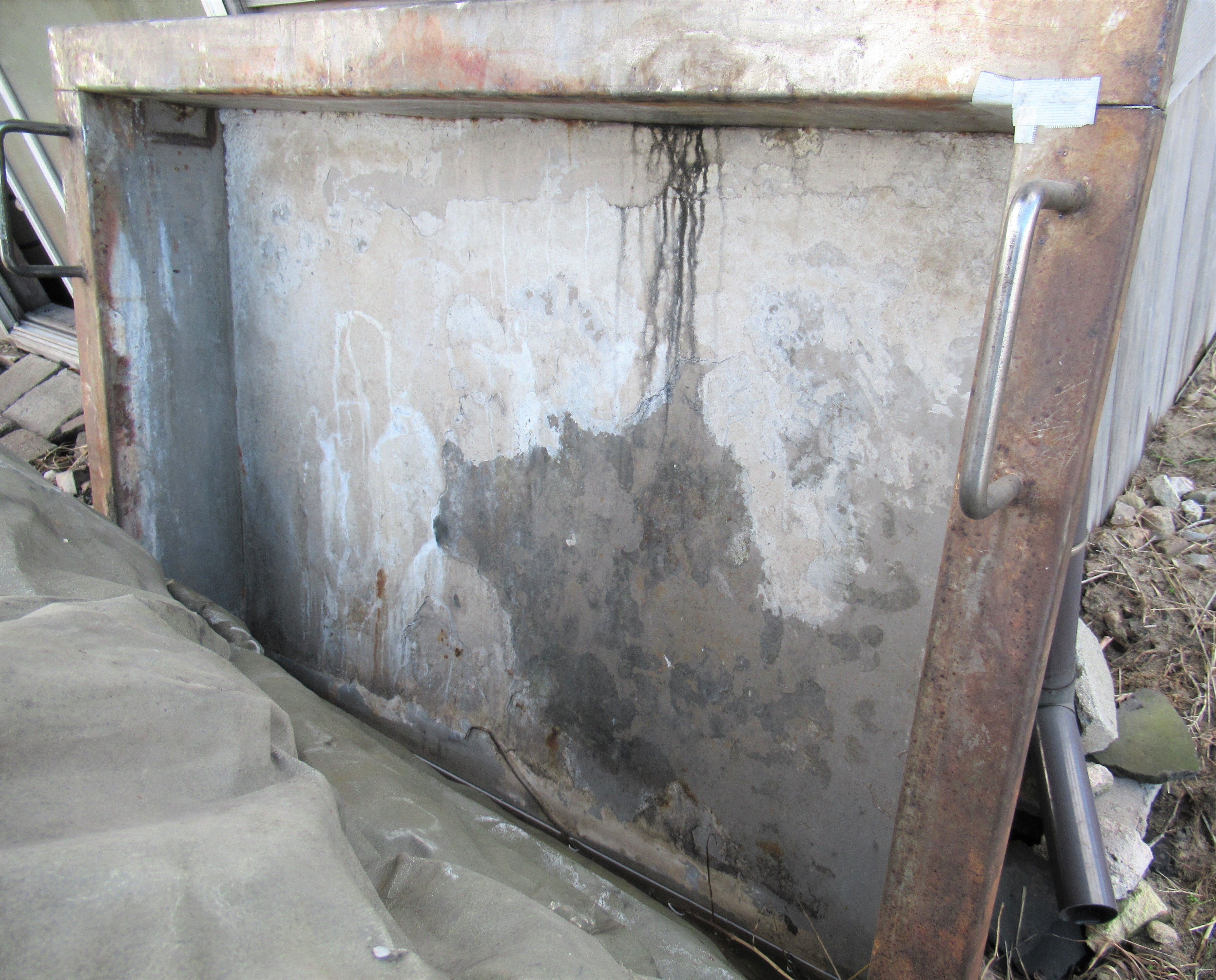 焚窯の上にのせる平釜。海水を入れて長時間強い火力にあたるため、約3年程度で穴が空いてしまう。
