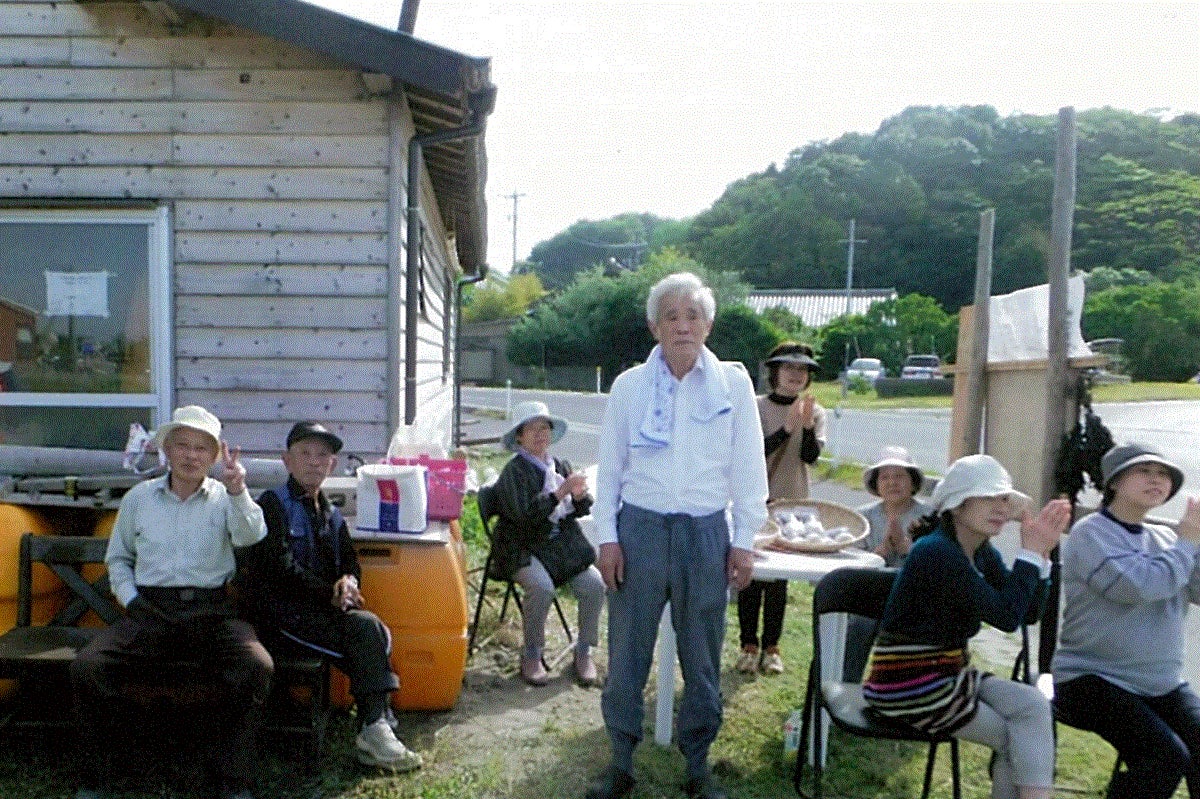 元々同じ地区に住む者たちが、高齢者の生きがいを求めて、海岸の清掃と美化活動を行っていました。そこから藻塩造りを思い立ち、現在に至ります。現在のメンバーは定年退職後で時間にゆとりが出来た者たちが、面白がって次々と集まってきました。長時間焚き続けるため、交代で火の番をしています。重労働の部分も多く、何度も「これで辞めよう」とみんなで話すこともありました。しかし、年々藻塩愛食家が増え、さらに何度も手紙をもらい、「辞めずに続けよう」と思うようになりました。