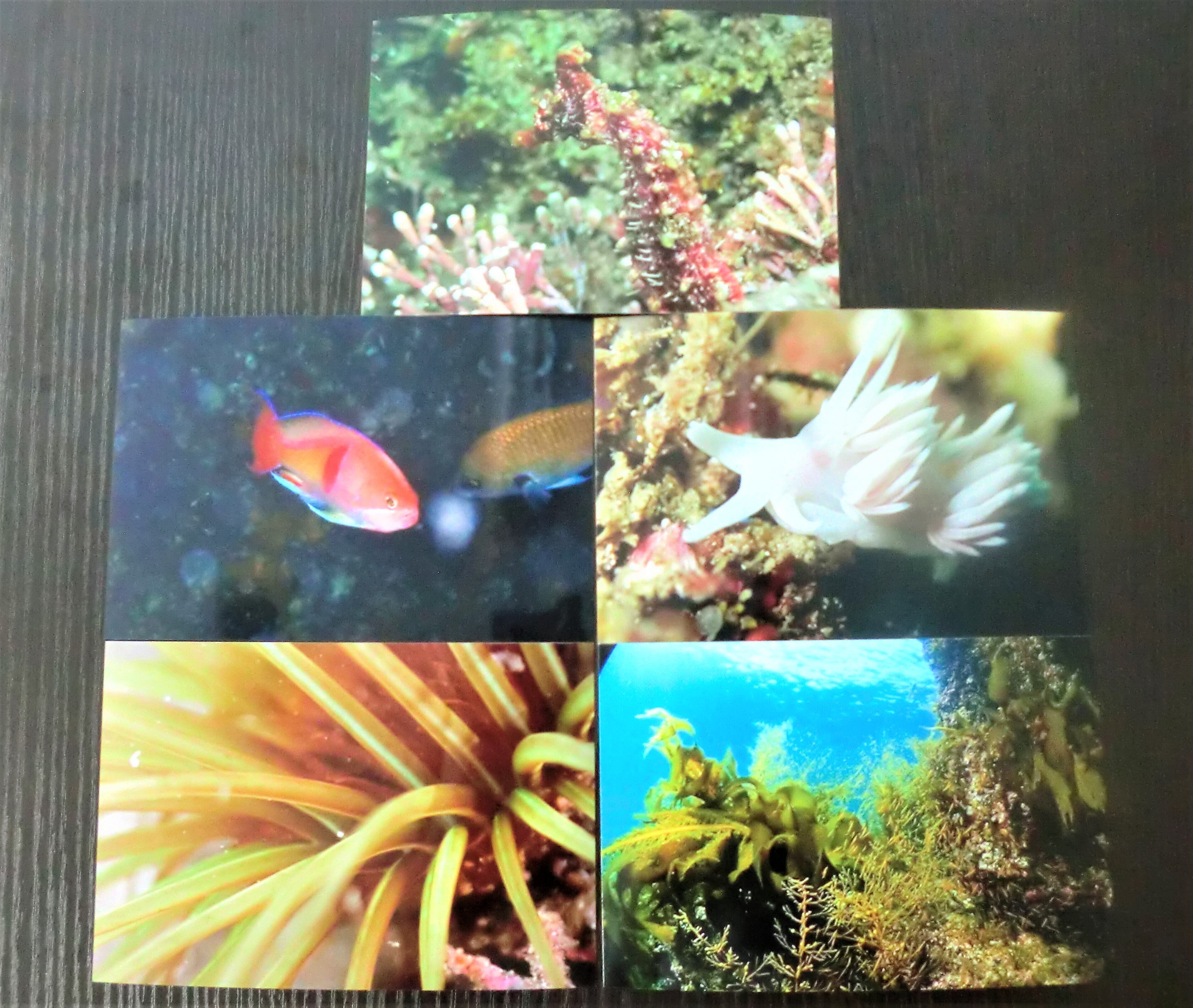 シーワークのダイバーが撮影した海中の写真(はがきサイズ)を5枚セットにして、お礼のお手紙を添えてお送りします。
