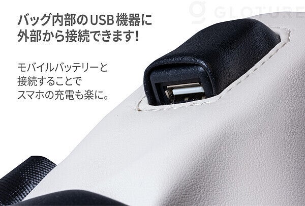 側面にはUSBポートが付いていて、荷物がしっかり入るだけでなくスマートな一面も。