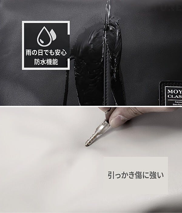 1、2泊程度の旅行でも十分使える最大35Lの容量が、耐刃性のある伸び縮みしない丈夫な高級PUレザーで覆われています。