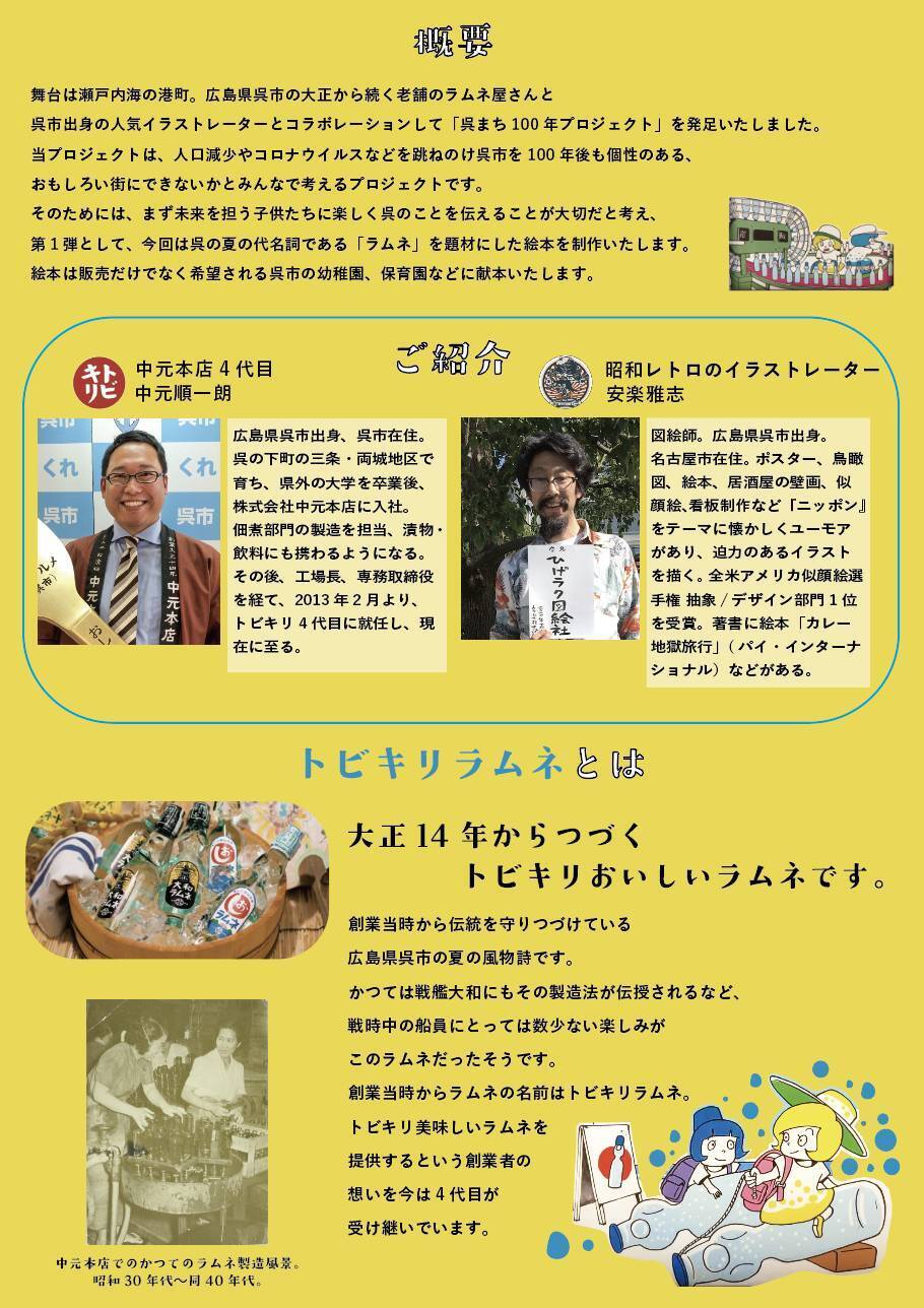 当プロジェクトを応援してくださる皆様いつもお世話になっております。下町書房です。本日の産経新聞に中元本店の「大和ラムネ」の記事が掲載されました!プロジェクトとは直接関係があるわけではないですが、あらためてラムネという飲み物が残した価値や意味を考えることができました。当プロジェクトの絵本もラムネそのものと同じように呉の未来をつくる存在にできるよう進めて参ります。何卒よろしくお願いいたします。下町書房