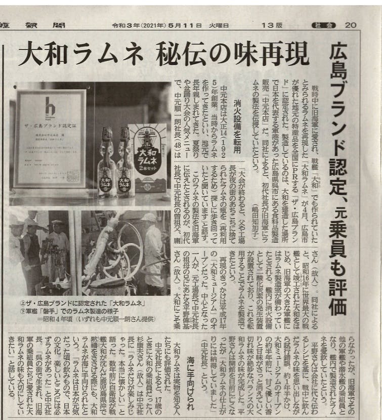 本日の産経新聞に中元本店の「大和ラムネ」の記事が掲載されました!
