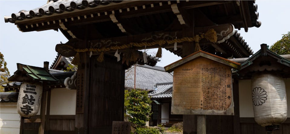 三鈷寺がある場所は京都・西山という名前のとおり、京の都の最も西に位置する寺であり、最も極楽浄土に近い寺とされてきました。また、三鈷寺は最寄りのバス停から徒歩10分上らなければたどり着けず、車が通ることも出来ません。
