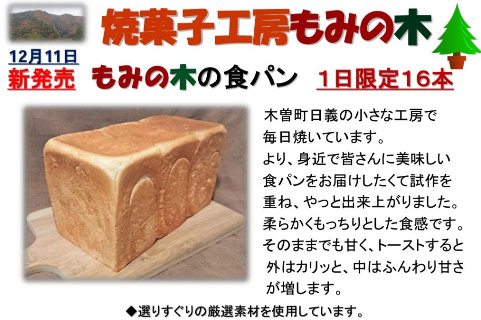 昨今の食パンブームですが、高級食パンに負けないだけの商品をここ、木曽町で作っていきたいと思っております。
