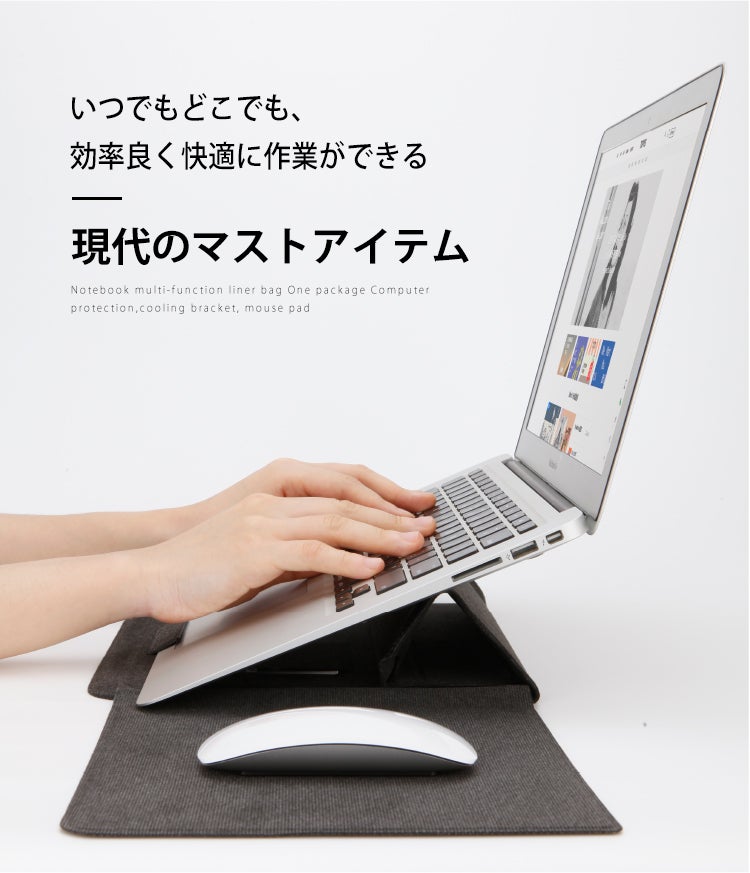 ですが、わずか5秒でスタンドとマウスパッドに早変わり!必要なものをすべてまとめた多機能ラップトップケースがあれば、いつでもどこでも快適な作業スペースを確保することができます。