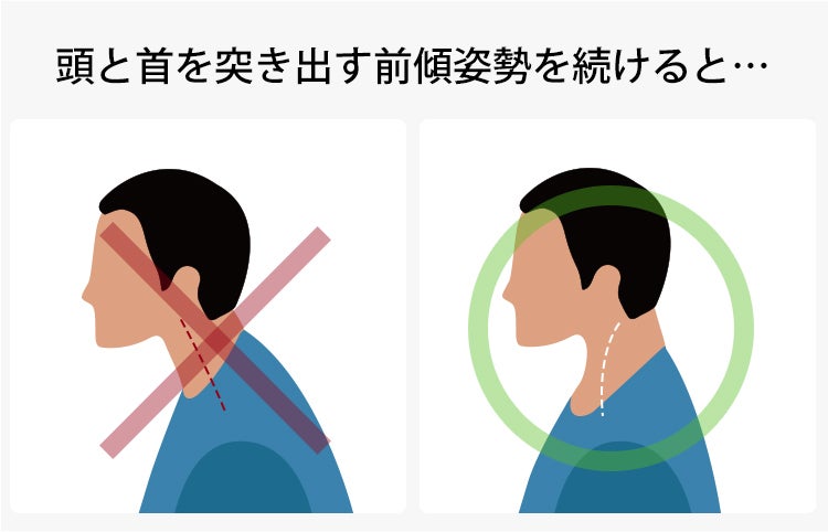 頭と首を突き出す姿勢を続け、頸椎(首の骨)の本来あるカーブが失われた“ストレートネック”は、現在の日本人の約9割が予備軍と言われています。近年では“スマホ首”とも呼ばれることも。