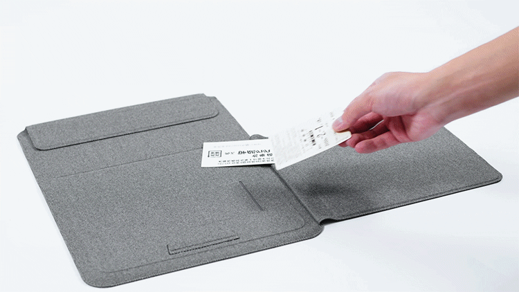1枚のカードが収納できる隠れポケットも。わずかな隙間も与えない密着感で、紛失の心配なし!ノートパソコンと一緒に大切なカードを持ち歩くことができます。