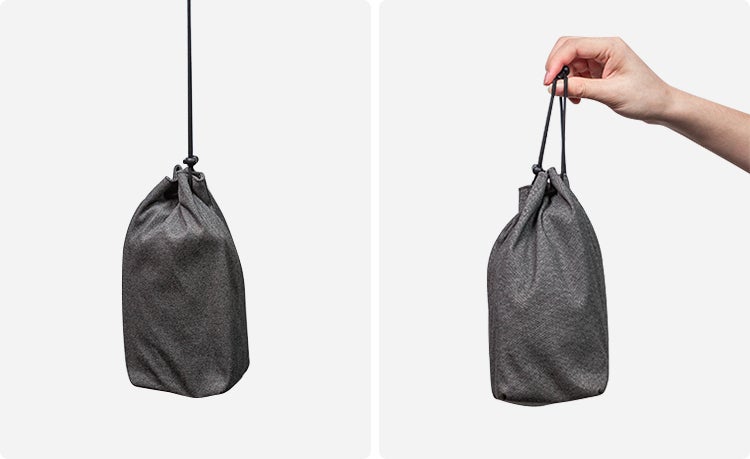 紐の長さは調整自由。お好みの持ちやすい長さにして、持ち運んでくださいね。