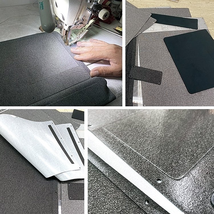 表面は撥水加工が施された防水生地。さらにポリエステル素材をくっつけるために接着強度に優れたホットメルト接着剤を採用し、防水効果を二重にしています。