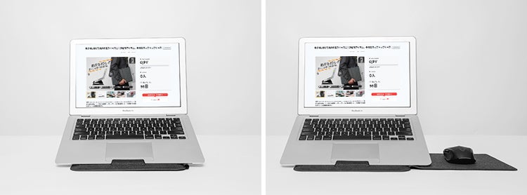 ノートパソコンでの作業時に、マウスパッドを持ち歩く人は少ないのではないでしょうか。本商品なら荷物を増やすことなく、ラップトップケースを広げるだけでマウスパッドのセッティングOK!
