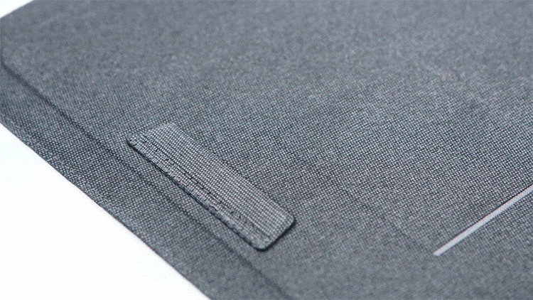 まず第一に考えたのが、素材。これまで多かったレザー製は、確かに高級感に溢れていましたが熱には弱い。パソコンにこもった熱で劣化してしまう不安を拭えませんでした。そこで、本商品は直接パソコンが触れる裏地にポリエステル素材を採用。心地よい手触りで、耐熱性抜群。パソコンを守る素材にはもってこいの素材だと考えています。