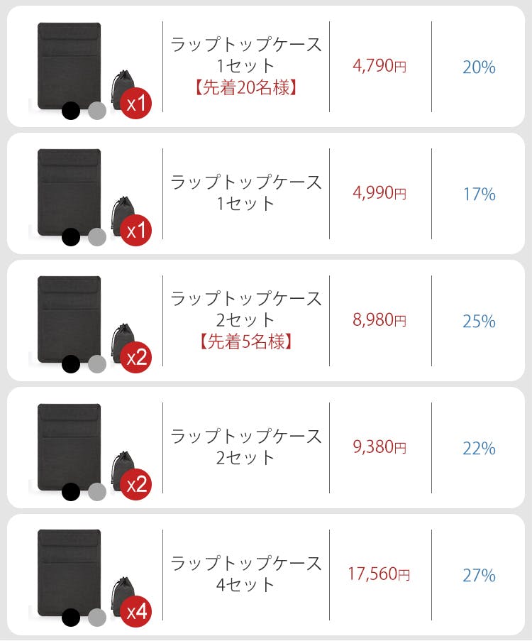 2021/04/13 09:23unsyuでございます。この度は多機能ラップトップケースにご支援いただき、誠にありがとうございました!本プロジェクトは4/9(金)にプロジェクトを終了いたしました。リターン商品の発送につきましては、準備が整い次第、活動報告を通じてご報告させていただきます。発送まで今しばらくお待ちくださいませ(*^^*)引き続き、unsyuをよろしくお願いいたします。 もっと見る