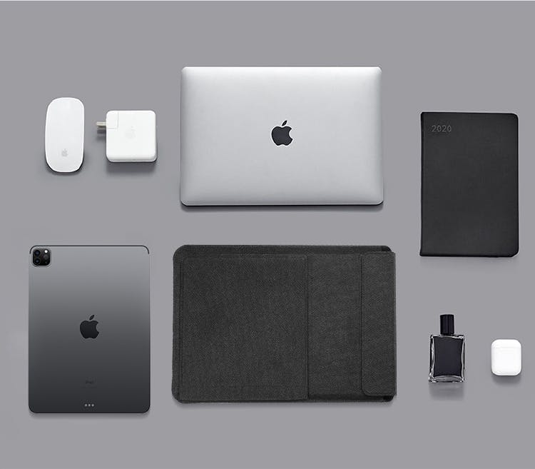 作業を快適にするだけではなく、ラップトップケースとしても超一流品。約6mmの極薄設計でビジネスバッグやリュックに入れても場所を取らず、326gの軽量サイズは持ち運びの負担になりません。