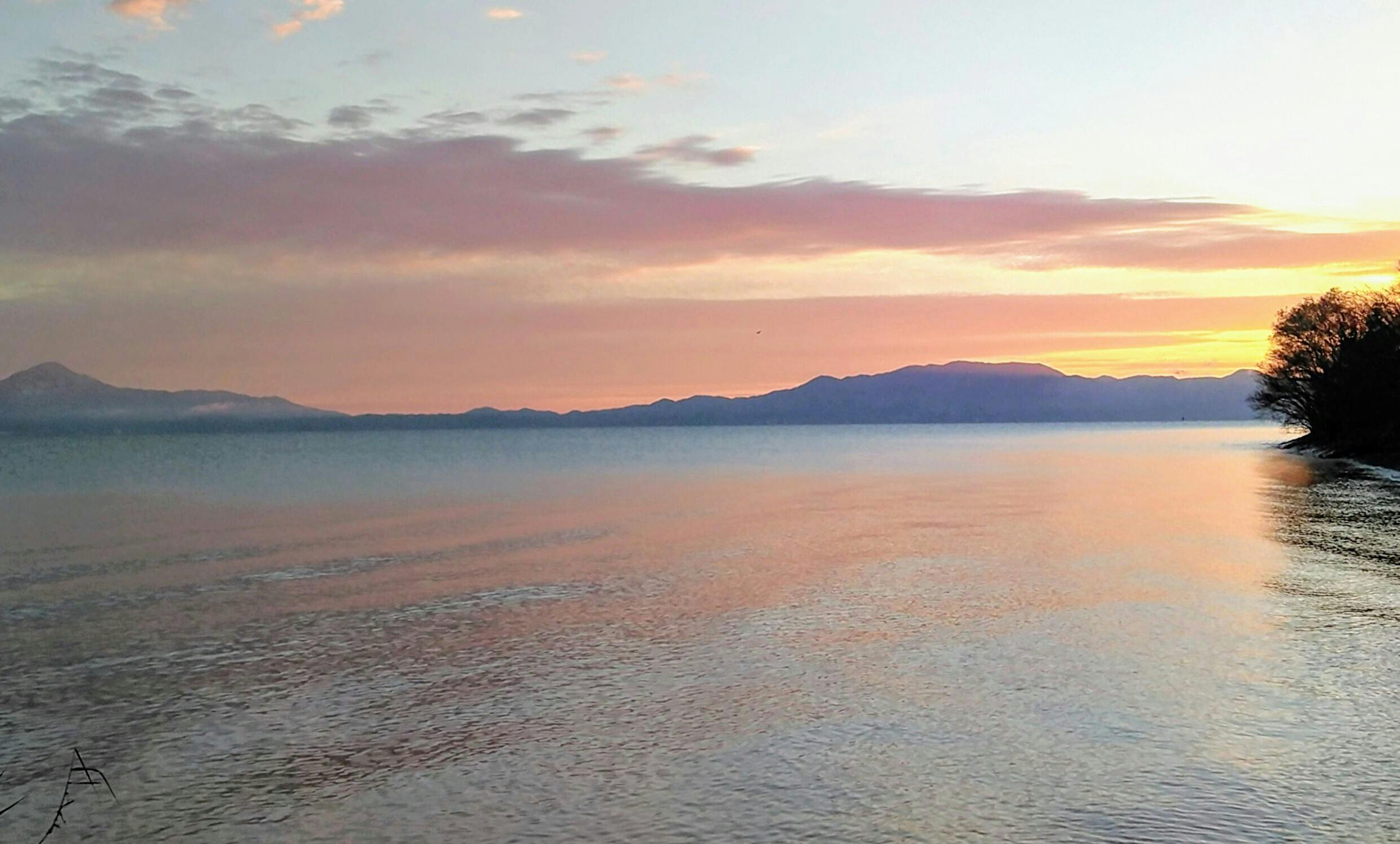 当敷地内からの琵琶湖の夜明けです