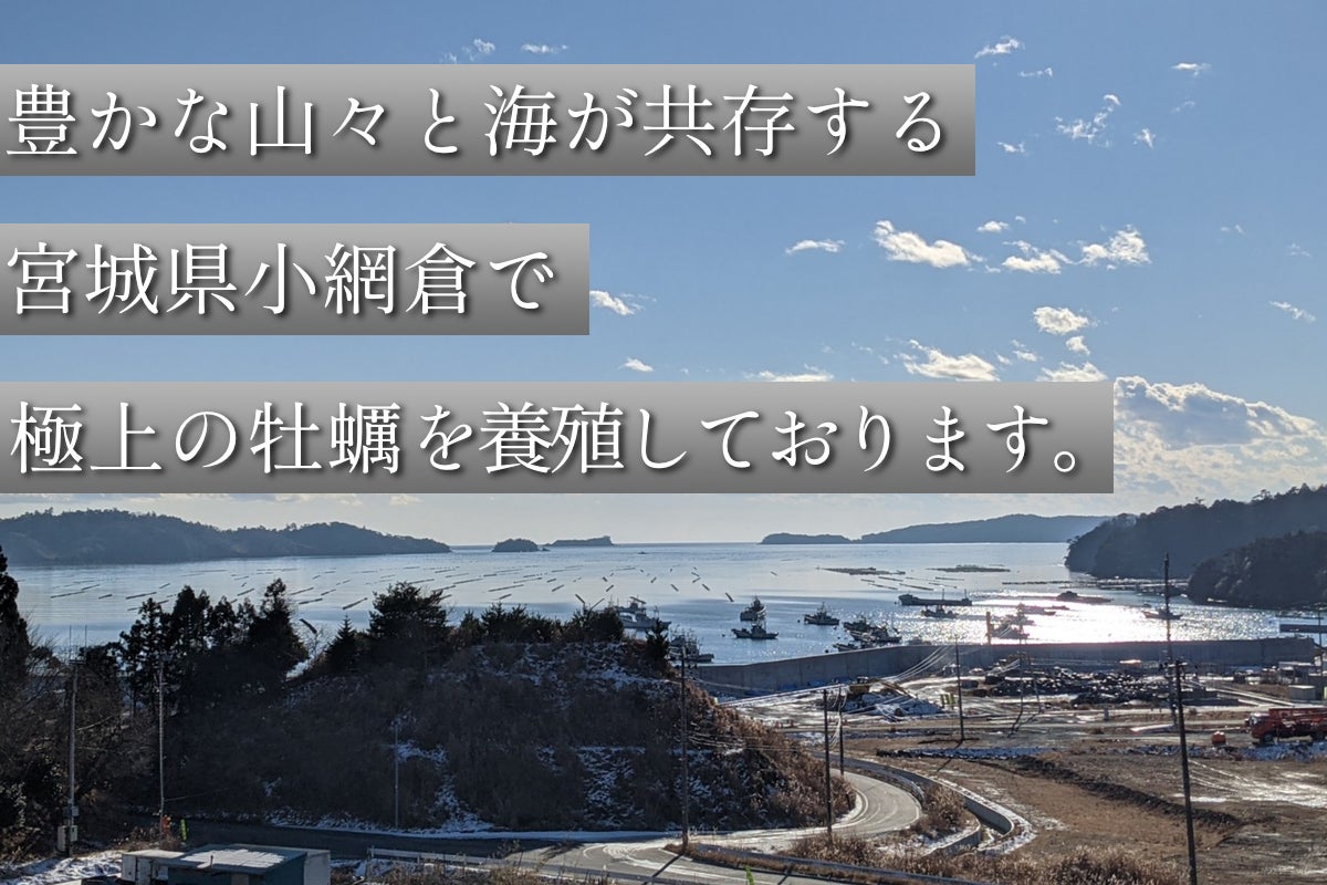 牡鹿半島の一部にあるリアス式の入り組んだ海外線を見渡すと、周囲を壮大な山々が取り囲んでいます。森林に降り注いだ雨水は長い年月をかけて地中深くに染み込み、入り組んだ海岸線へと流れてきます。そんな「森と海が共存する地形」が美味しく清潔な牡蠣を育てている大きな要因です。また、暖流と寒流がちょうどぶつかる部分で良質なプランクトンが大変豊富で、上質な牡蠣が育つ環境がベストな状態で整っております。