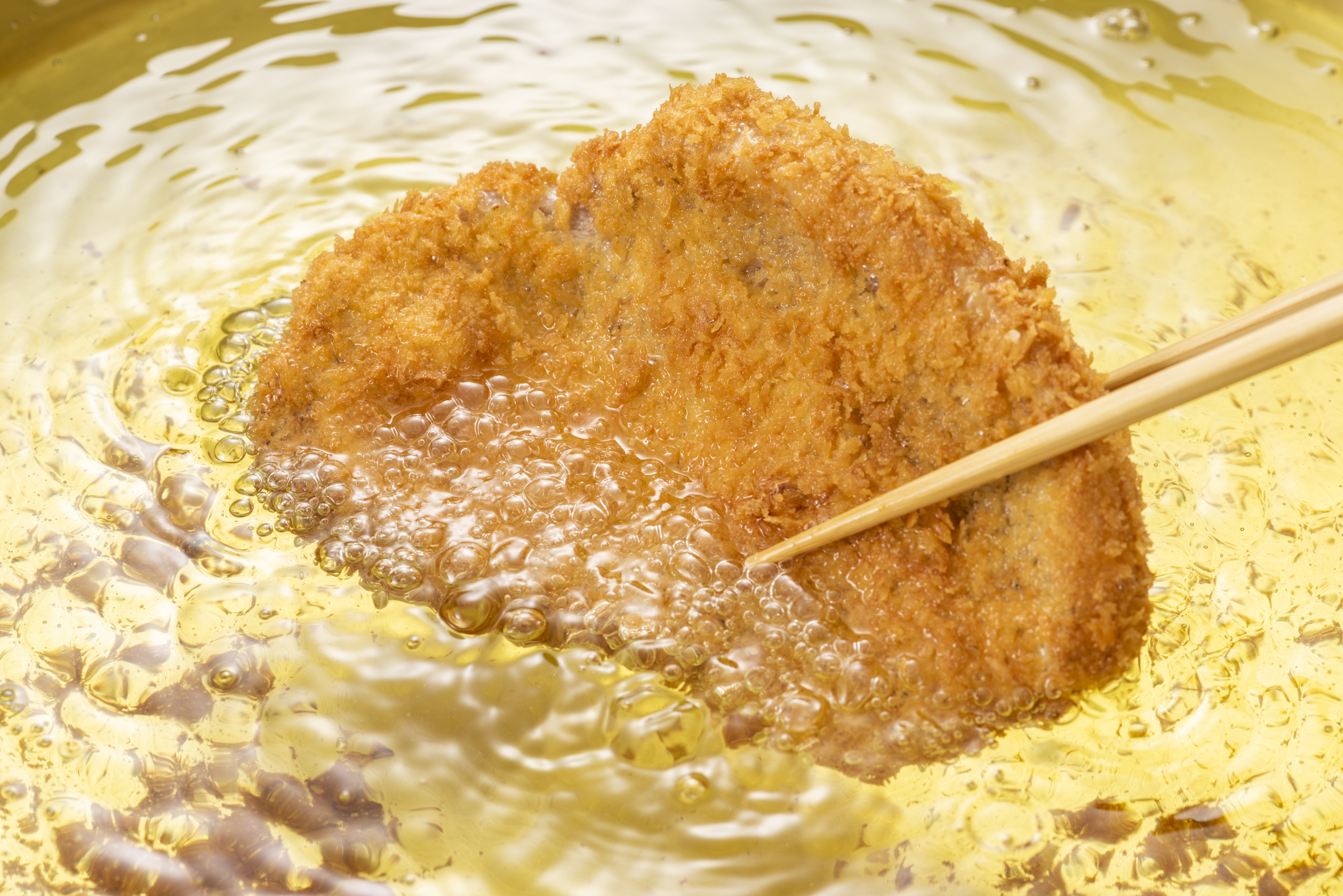 今回のとんかつは、豚にも与えているオレイン酸豊富なアボカドオイルを揚げ油に使用しました。