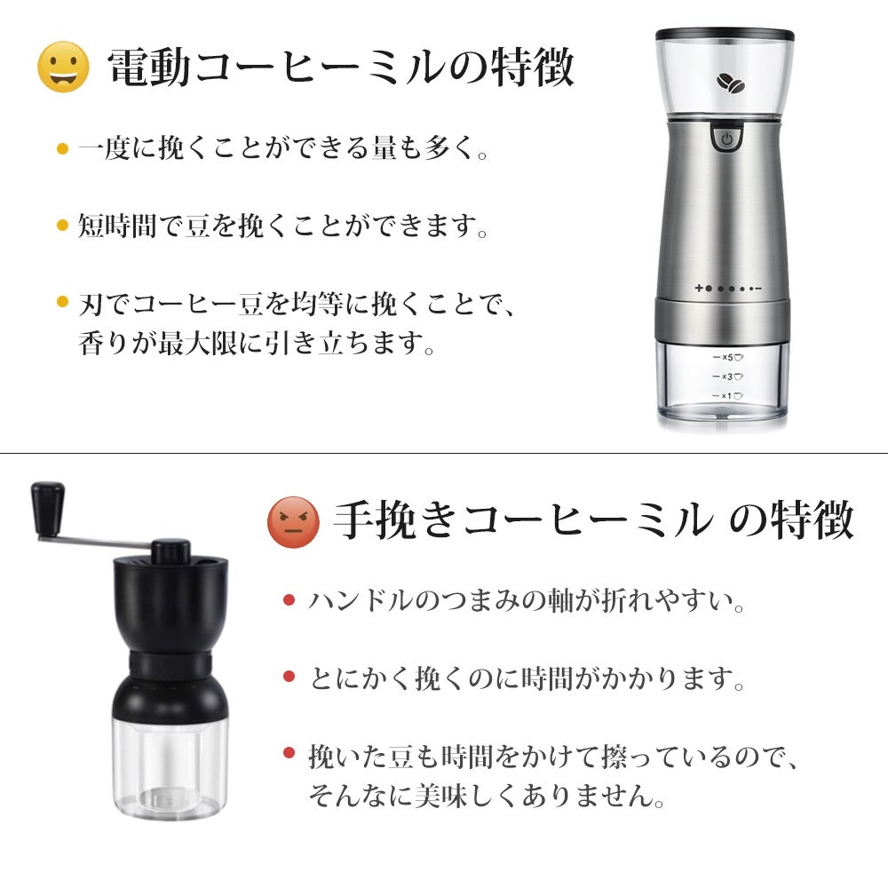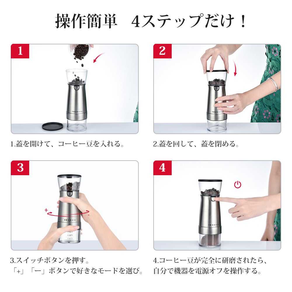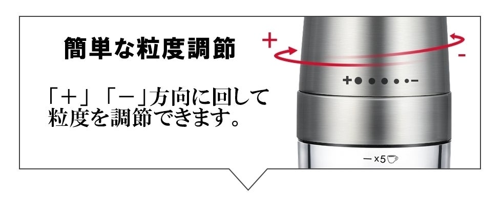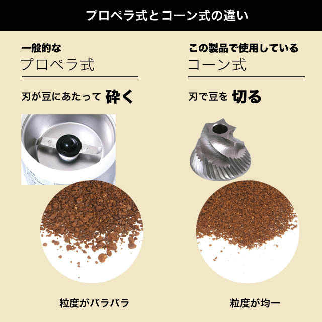 - ハイパワーなモーターを採用して、均一なコーヒー粉を短時間で挽きすることができます。