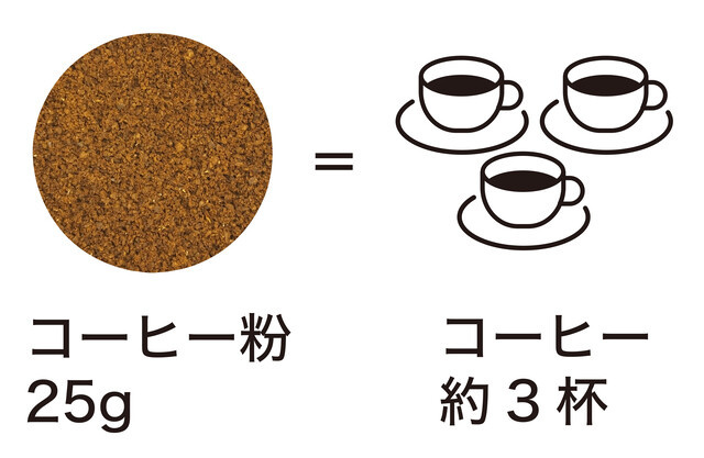 コーヒー豆25gでコーヒー約3杯分になります。手動式だと豆を挽くだけで5分以上もかかることに、、、。