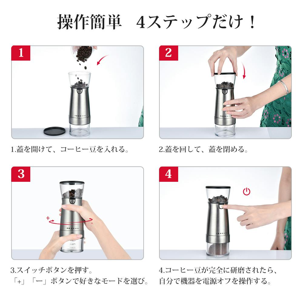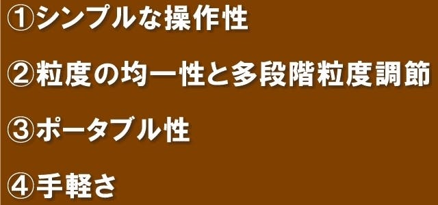 4段階粒度調節も可能なので、抽出器具に合った粗さに調節することができます。