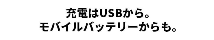 充電はUSBケーブルをつないで簡単に。