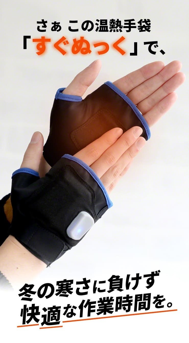 充電式温熱手袋「すぐぬっく」の登場です。