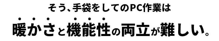 寒いからと言ってPCを前にして暖かい手袋をするなんてできないし、薄手の手袋をしてみてもやっぱり寒い。。