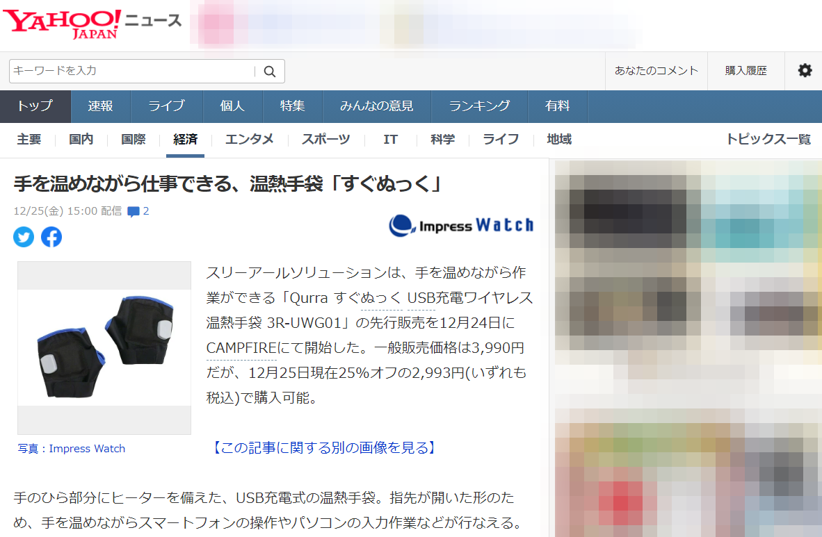 この度は「すぐぬっく」のプロジェクトにご注目いただき誠にありがとうございます。年末年始、全国的に冷え込みましたがスマホに使われているリチウムイオン電池は寒さに弱いと言われています。東北や北陸の地域では0度を下回る日々が続いており外でスマホを使うと電池の持ちが心配です。ぜひ、そのようなときはすぐぬっくを併用してスマホを使っていただければ電池の持ちが良くなるかもしれません。プロジェクトは残り2週間になりましたが、まだまだリターンございます。ぜひ、ご検討ください。