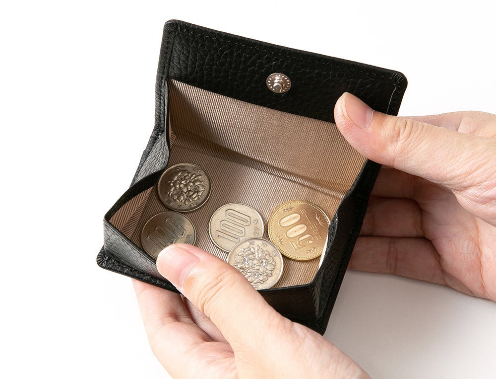 小銭入れって便利でスマート。だけど・・・ キャッシュレスが進んでも小銭が必要なときってありますよね。駐車場、ロッカー、自動販売機、現金しか使えないお店、例えば、私の近所だと街の老舗のお弁当屋さん、古き良き純喫茶、いつものおばちゃんの定食屋など。 大きい財布を持っていくまでもない、そんなときに小さくて軽い、さっと小銭を取り出せる小銭入れがあったら便利です。でも、そんなときに限って「小銭入れどこやったっけ?」となるんですよね・・・