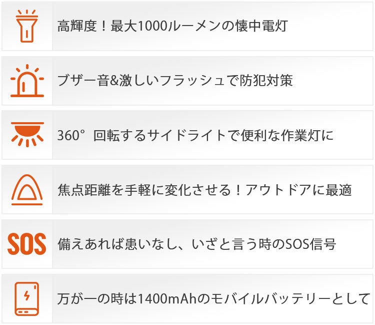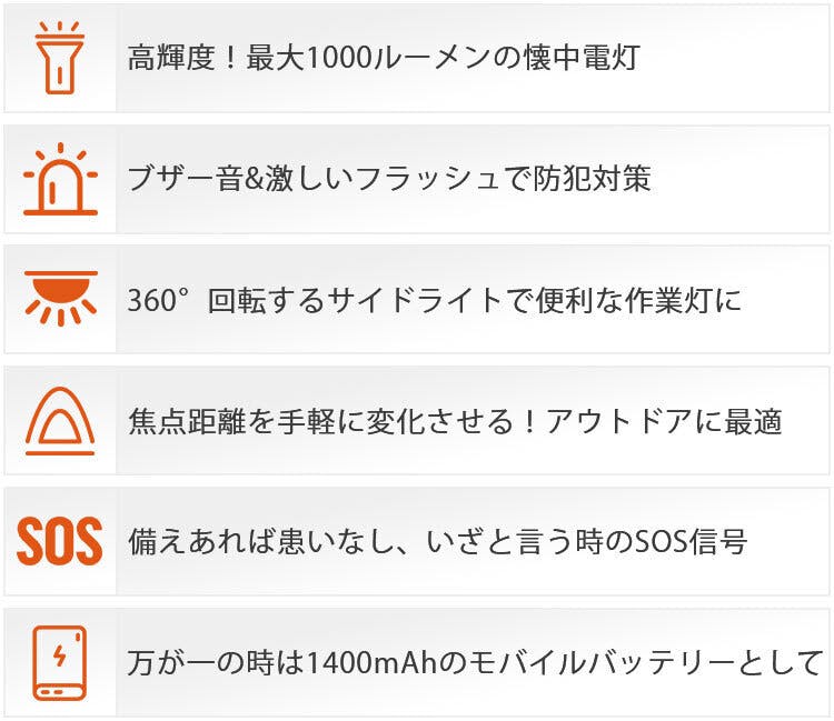 ■防犯懐中電灯「Thunder」の6つの機能