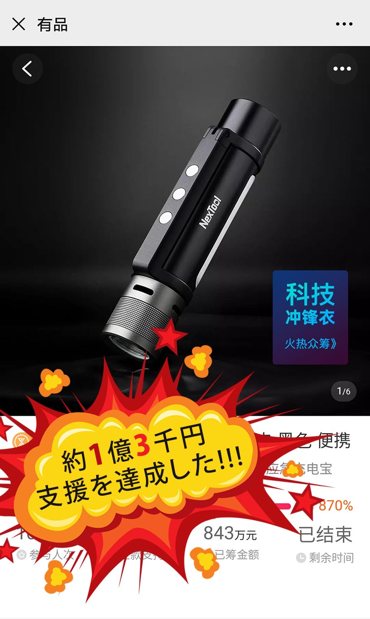 ▲中国の小米有品(YOUPIN)クラウドファンディングにて、2020年7月16日~7月29日までたったの14日間で8434115.18元(約1億3千円)の支援を集めた大絶賛製品。