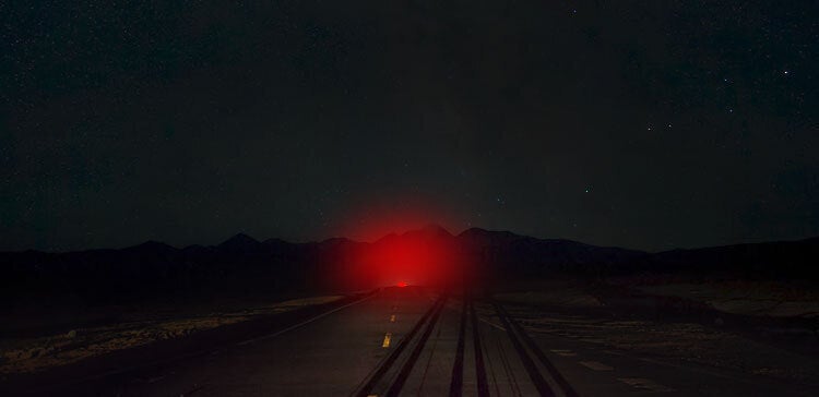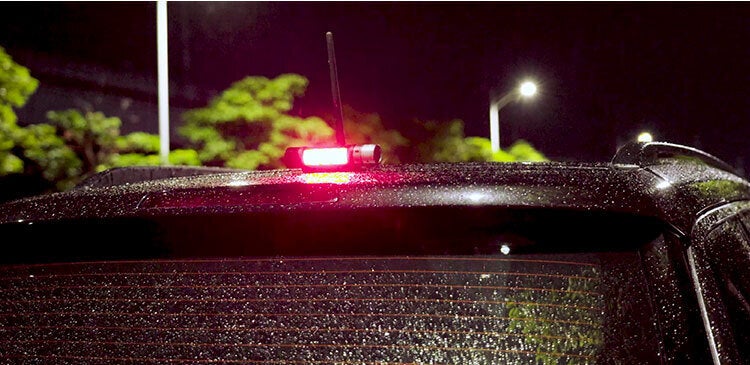 ▲夜道で突然起きたトラブルに急遽駐車。赤光を点灯させ車のボディに貼り付ければ安全ですよね。