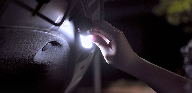 ▲両手が解放されるので、メンテナンスも楽々!車内で災害に遭遇してしまった際にも役立ちます。