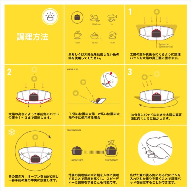 2021/03/30 21:33ご支援頂きました皆様、誠に有難うございます。本日でプロジェクト終了となります。お届けは4月中の発送となる予定です。太陽光エネルギーのみを使っての調理を皆様に楽しんでいただければと思います。商品内にオススメの調理方法などが記載されておりますが、焼いたり、沸騰させたりすることが出来るますかという質問が多く寄せられます。こちらの商品は太陽光、約120℃でゆっくり温めます。なので焼く為ではなく煮込みになります。また、水の量が多すぎると沸騰は難しいです。晴れの日がより楽しいものとなります様に!Sun's GOOD!! もっと見る