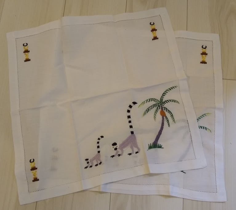 ②ワオキツネザル刺繍ランチョンマット+「Thank youムービー」(ムービーはメールで2022年1月にお届け)