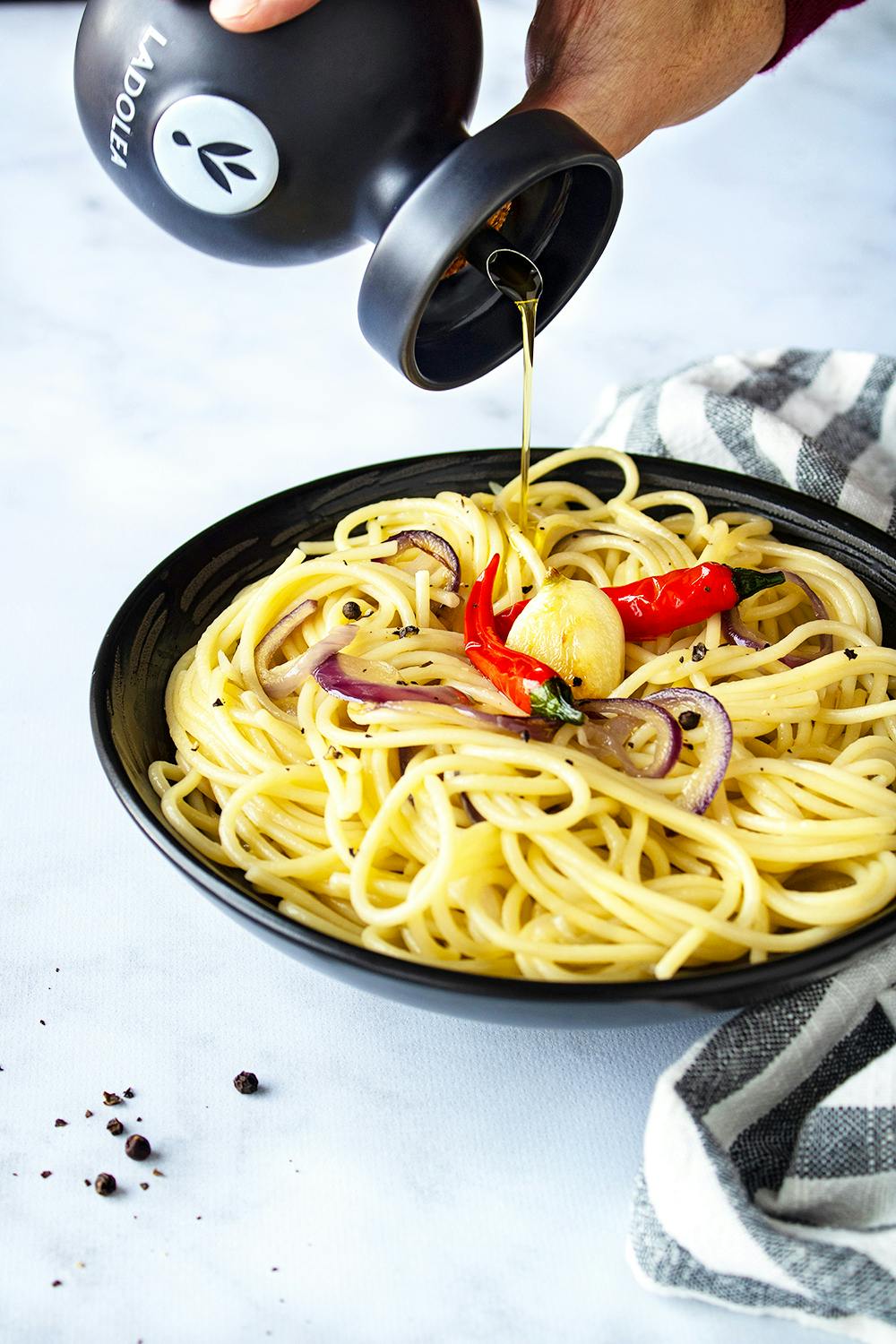 パスタなどにかける場合は、調理が終わった後で、食べる直前にかけることをお勧めいたします。