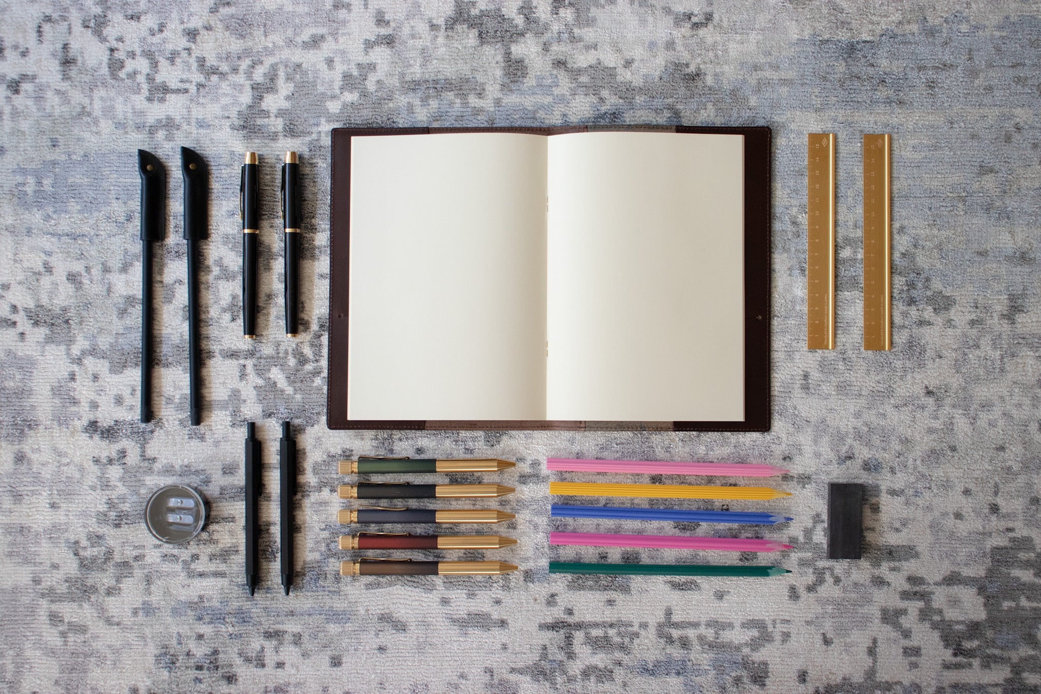 ・「書く」ために最適な座席と、思わず何か書きたくなっちゃうような素敵なペン・ノートを用意しています。美味しいコーヒー片手に、書斎気分を味わってください。