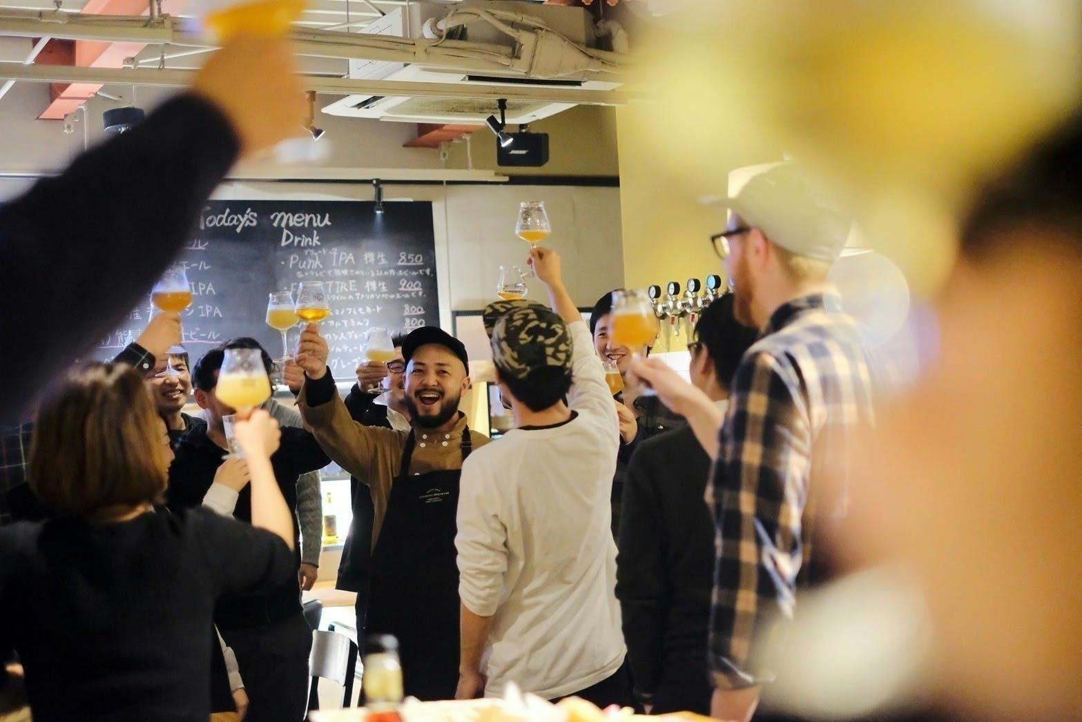 地元熊本で作ったクラフトビールで乾杯する大人たちの姿。