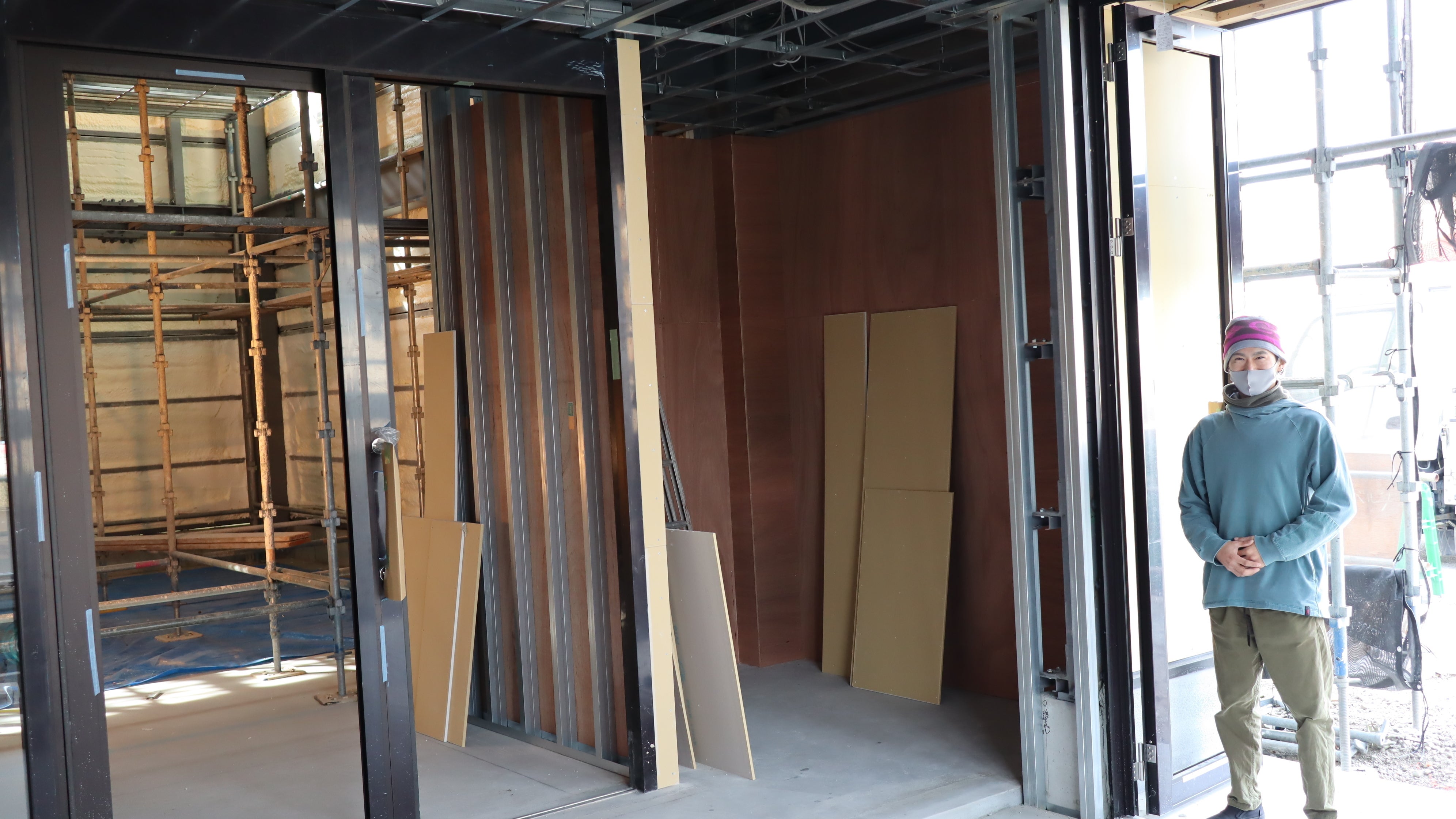 2020/12/29 15:32この度、プロジェクトぺージをご覧いただきまして誠にありがとうございます。2020年12月29日現在の建設過程のご報告をさせて頂きます。外装は落ち着きあるカラーのアーミーグリーンと木目です。通りに面しておりますので、すぐに見つけて頂けます!!こちらの写真の窓は開閉式で、換気も可能ですし、窓の外側にはテラスを作る予定です。気持ちの良い季節はテラスで休憩をして頂けます!玄関側から見た受付けです。↑↑↑↑受付側から見た玄関です↓↓↓↓ガラス張りでおしゃれでオープンな入口になっています。次は、断熱材を入れ、上にカバーを張っている工程です。更衣室やトイレも形が出てきました!!そして当ジム目玉の一つである屋上は、とても広いです!!写真に納まりきりません!以上が2020年12月29日現在の経過報告になります。年が明けると、クライミングジムで1番重要なクライミングウォールの施工が始まります。素晴らしい壁になる事は間違いありません。クライミング壁施工の様子もご報告致しますので是非、お楽しみにして頂き、加古川の、ハイマートベルク クライミングジムを宜しくお願い致します。 もっと見る建設過程報告