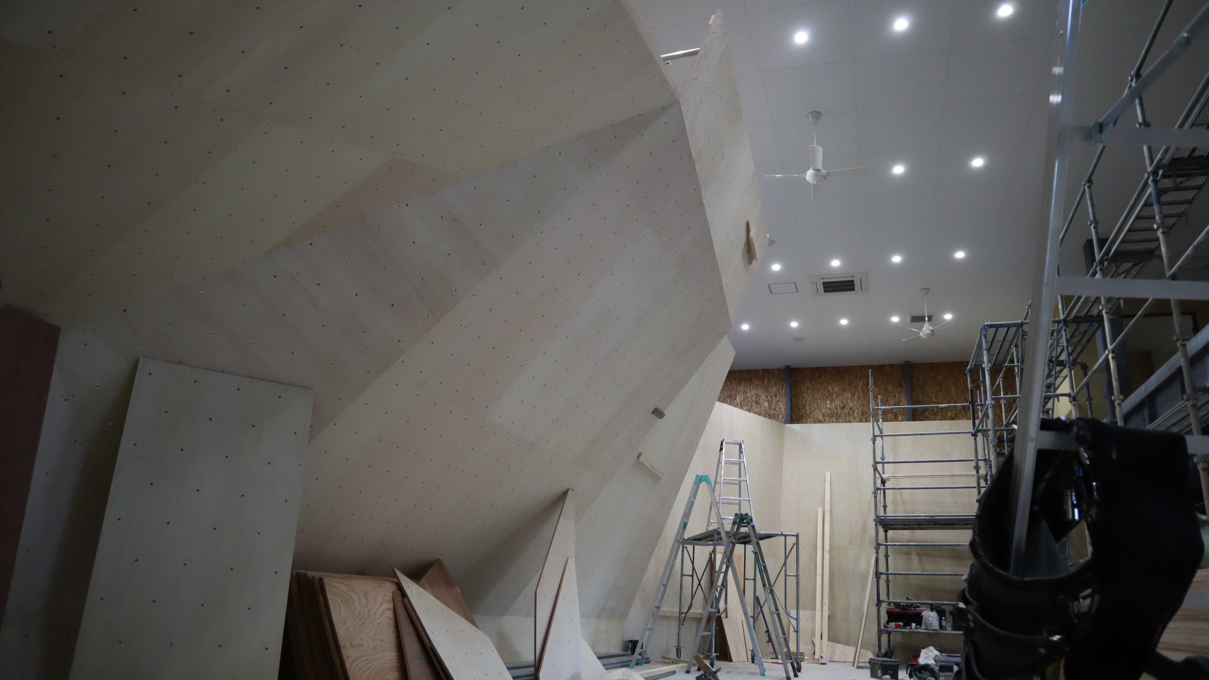 2021/01/11 10:57この度、プロジェクトぺージをご覧いただきまして誠にありがとうございます。2021年1月10日現在の建設過程のご報告をさせていただきます。 建物の建設が着々と進み、いよいよクライミングウォールの施工段階へと入りました。壁建てを行う職人には、各地で壁建てを行っている奥弥工務店、またクライミングハウス OKKU ROCK のオーナーでもある奥谷 和也さん日本のルートクライミング(ロープを使ったクライミング)のルート開拓を数多く行い、また全国各地で壁施工を行っている大工英晃さん ジャパンカップ等、数々のコンペ経験も豊富で成績も残し、ルートセット、さらに壁施工も可能な武田 匠さん のお三方をお招きし、施工していただいてます。こちらは入り口から見て右手の壁。90°の垂壁(写真左側)と85°のスラブ壁(写真右側)です。クライミングでスラブとは、裏側(人間がいる側と反対側)に向かって寝ている壁のことを指します。垂壁の幅は4m 、スラブ壁は幅4.5mと広めにとっており、初心者も触りやすく、また動きのある課題も登っていただけるので、上級者にも満足していただけることと思います。続いては垂壁左横にある壁です。こちらの115°壁(写真右側) は幅4.5m、130°壁(写真左側) は最大幅4.7mとセッションに最適な壁となっています。ハイマートベルクのメイン壁の1つとなることでしょう。続いて、153°壁。圧倒的な存在感を放つこの壁は、当ジム内での最大の傾斜です。今回ご紹介した壁は、すべて高さ4.5mとなります。 (写真スタッフの身長は169㎝)高く、そして登りがいのある壁ですね。今回の建設過程報告は以上となりますが、この他にもまだ壁を設置する予定です。ぜひ次回の報告も楽しみにしていただき、2/8のオープン以降、たくさんの方に登りに来ていただけると幸いです。加古川のハイマートベルク クライミングジムをどうぞ宜しくお願い致します。 もっと見る建設過程報告2