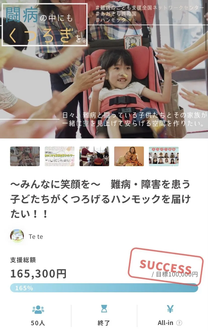 最終的に、165300円もの支援金が集まりました。改めて、ご支援くださった皆様ありがとうございました!!