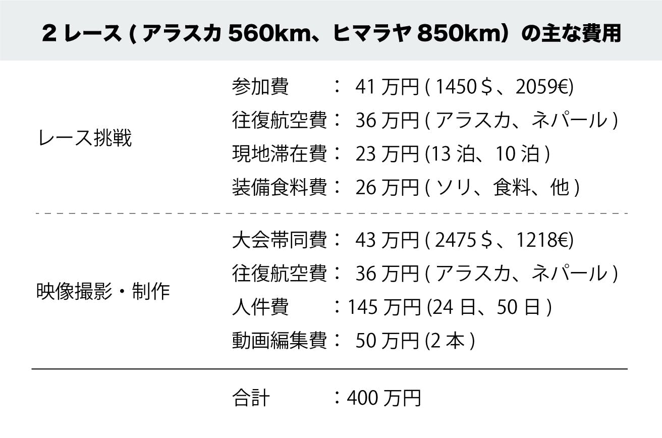今回、クラウドファンディングで「4大極地最高峰レースの挑戦費用の一部」と「ドキュメンタリー映像の撮影・製作費の一部」となる200万円を募ります。